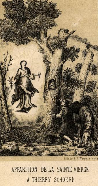 Maagd Maria verschenen aan Thierry Schoeré, een smid uit het dorp Orbey. Ter herinnering
